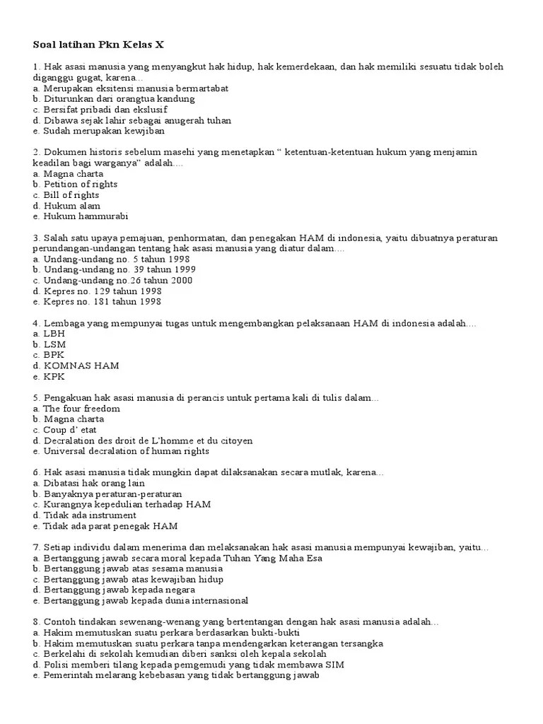 20 contoh soal pilihan ganda ppkn tentang hak asasi manusia beserta jawabannya tolong dijawab cepat ya terima kasih. Kasus semanggi i dan ii diawali peristiwa . Contoh pelanggaran ham ringan, yaitu…. Pengertian kemerdekaan berserikat serta berkumpul dalam pasal 28 uud 1945 yaitu. Contoh soal pkn tentang ham beserta jawabannya sebelumnya admin telah mempublish tulisan soal soal pilihan ganda kelas 11 semester 1 ktsp dengan kunci .